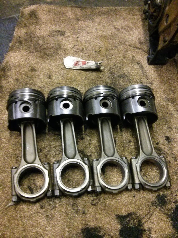 So went over to toms to pickup his new bottom end as he is without a car largely at the moment: ![]() Totally stock nearly bare block. ![]() Tearing it down: ![]() ![]() ![]() Rods and pistons out: ![]() Pre deck clean and bare block: ![]() OEM rods next to replacement rods: ![]() ![]() And on the pistons: ![]() New set of "used" bearings from a breakers yard, the ones with the rods were very worn, its very much a budget build, so rather than using new went for a "good" set of used, at the end of the day if theres meat on the bearings its not going to make a lot of difference in the grand sceme of things, but i told Tom to get something as wasnt happy with the old ones. ![]() Re assembly after chemical cleaning the block: ![]() Back together and a lick of paint: ![]() Sump cleanout: ![]() The ARP studs from my mtdi, i forced Tom to buy these from me as i have turbo plans for this engine and its just not worth the farce of lifting heads all the time for a set of studs, so they got banged in along with new MLS gasket. ![]() ![]() Thats about as far as i got chance to get due to other commitments. hoping to tear old engine out / replace bent valves / get rest of motor built up asap, make adaptors etc for new blower, and get the thing back in the car / fix all the broken / dodgy wiring and exhaus and get it up and running. | Dyno Power Runs & Steady State Facilities Available, Just Ask Anytime |
