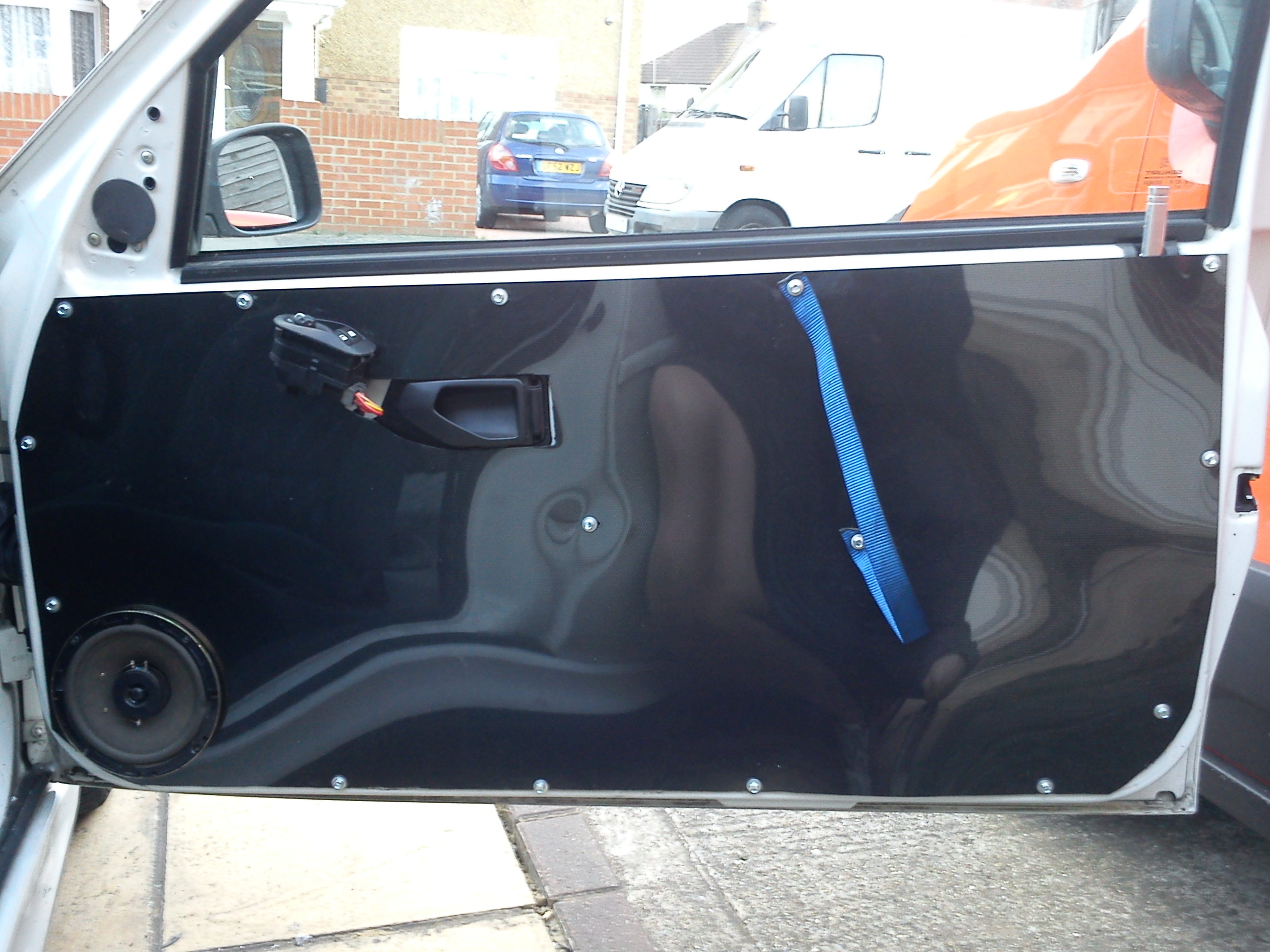 So my carbon fiber ABS sheet turned up yesterday and I made the first door card. I tried the measure twice cut once and still failed at the door handle hole (realised i should of used the handle surround as a template).