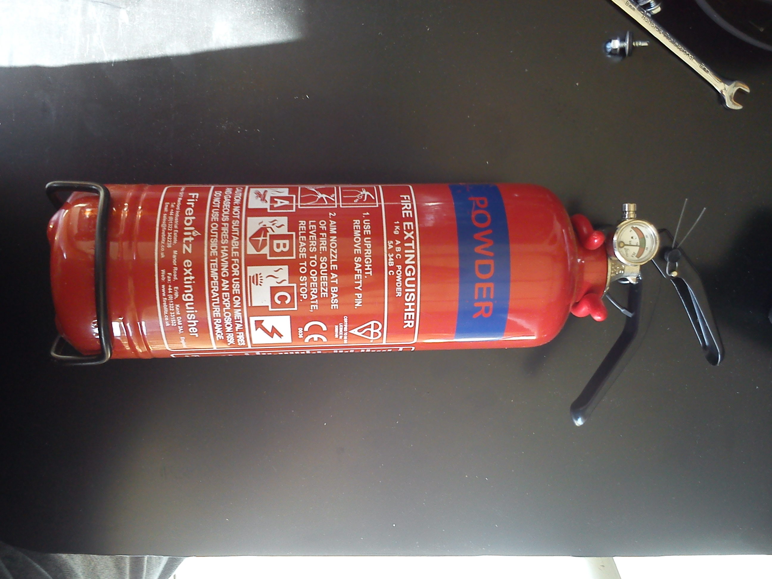 Heres the fire extinguisher fitted And the polycarbonate windows. Photo 3 shows just how tough polycarb is compared to perspex, thats an off cut tied into a knot, I bent a bit of it 180 degrees back onto itself and it didnt snap, amazing stuff. |