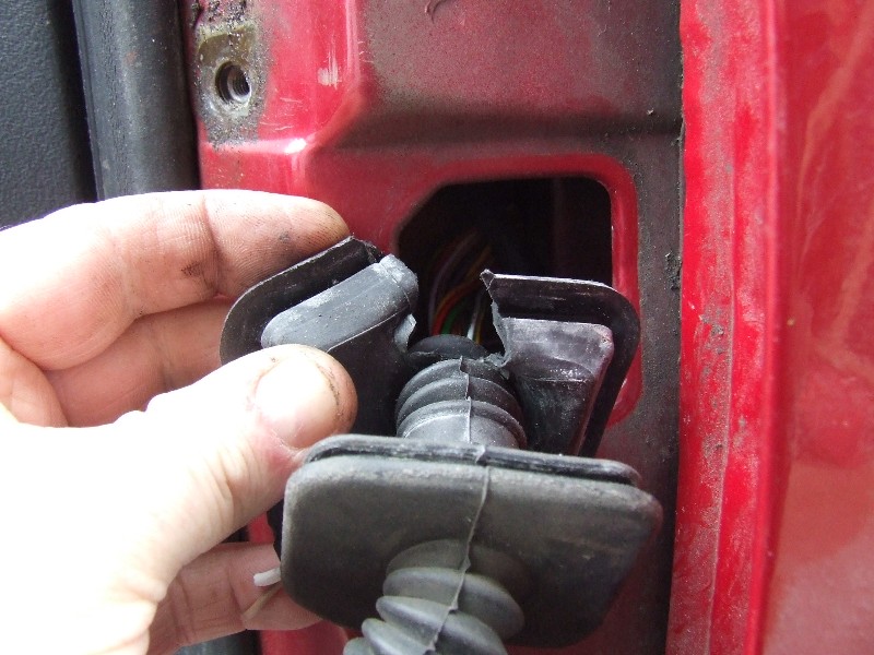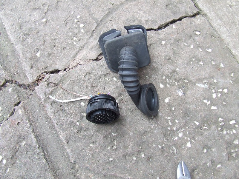 once i had freed both ends of the grommet i could then see my broken wires
