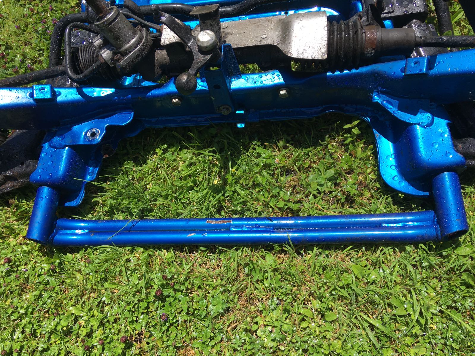 Rich W roller bearing wishbone arms along with the double strut brace and steering rack not sure if it's a 2.4 vts powder coated in blue:
