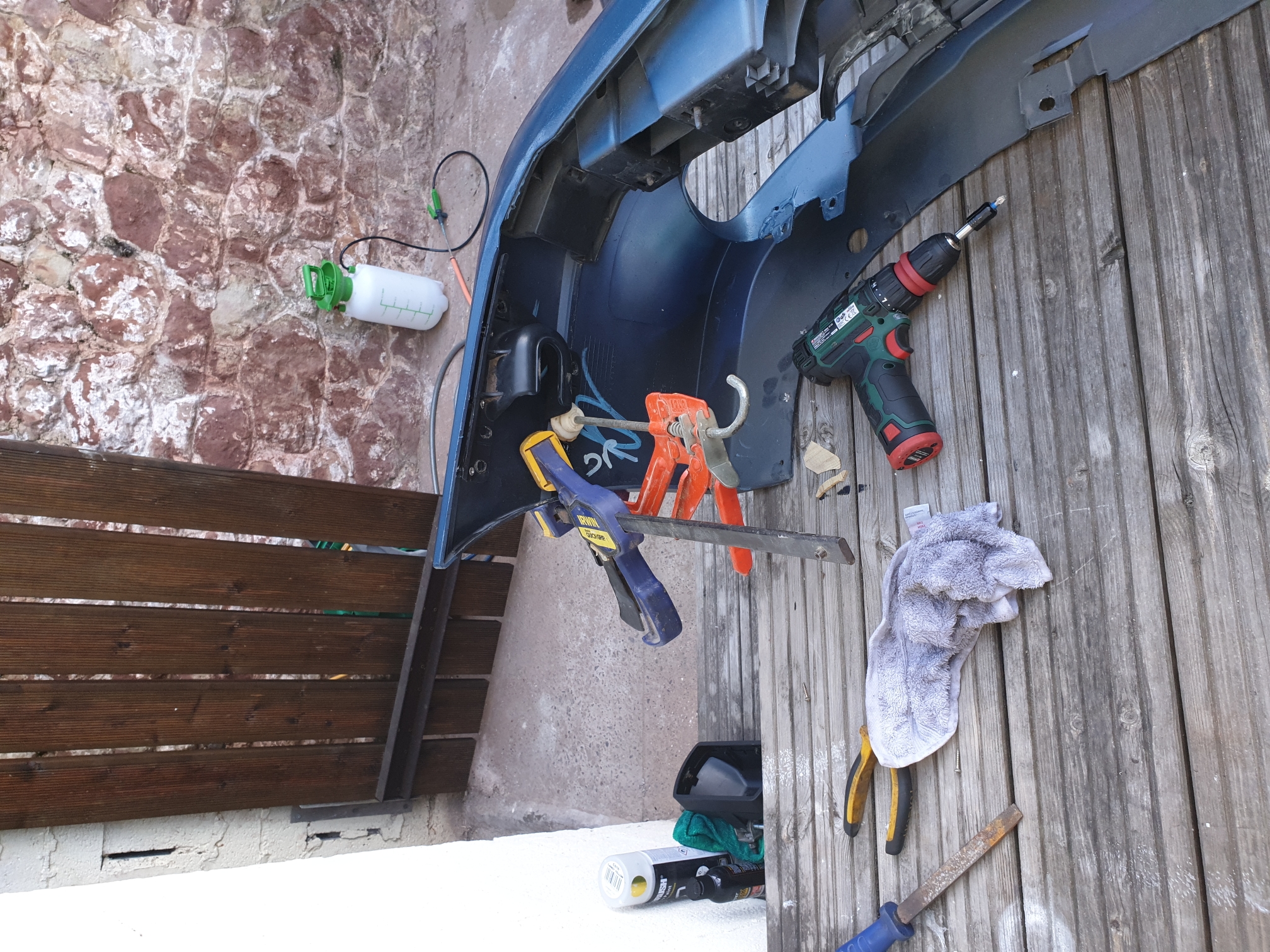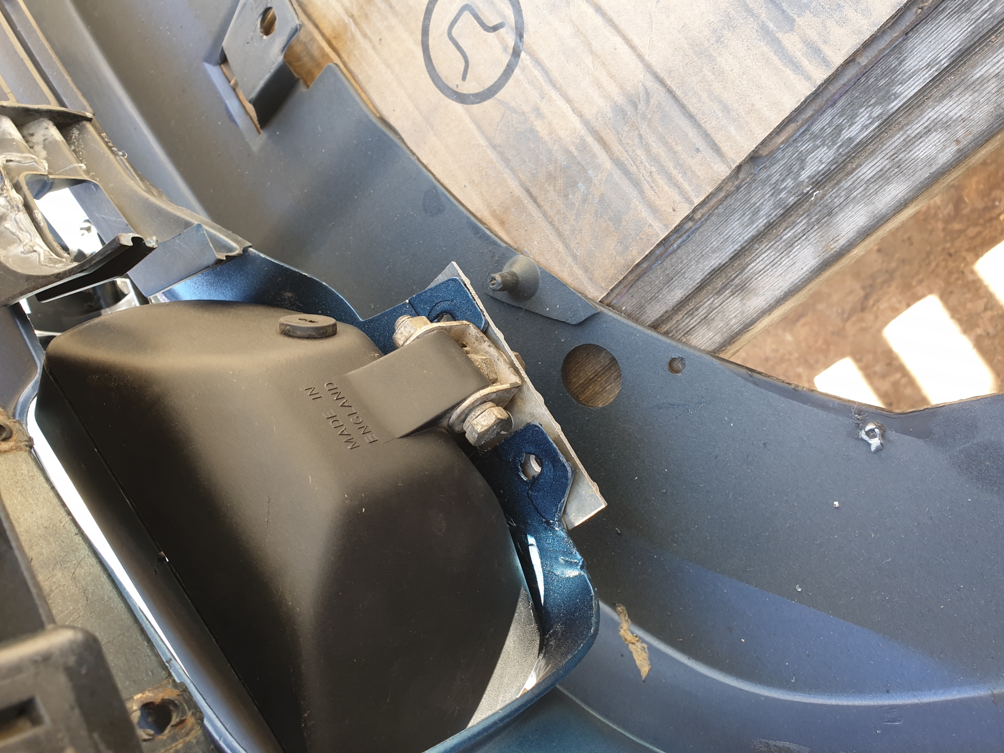 Swapped the brackets over from the old bumper using strong glue and a couple of short screws for good measure.