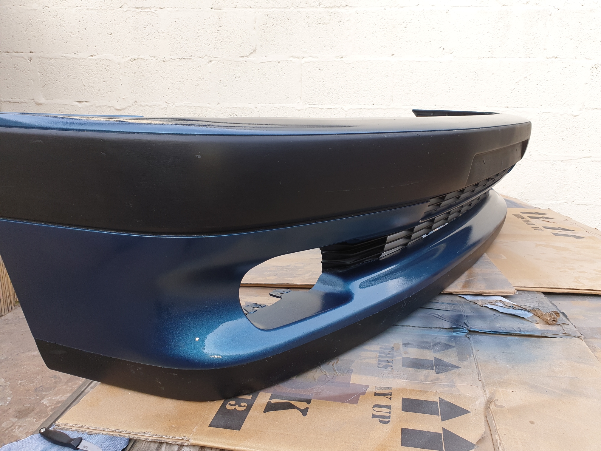 My first purchase was a phase 1 dturbo front bumper, I don't have any pictures of the bumper when it arrived but it was an absolute mess! Full of dents, nasty scratches and missing brackets for the fog lights and the nearside bracket to hold it onto the car. Get what you pay for I suppose! It was also the wrong colour so I went about a respray.