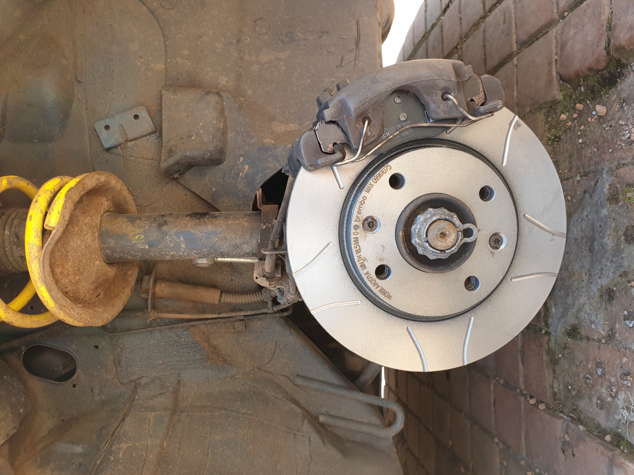 Front brakes needed replacing (due to a poorly misjudged hammer blow when replacing springs) so I bought new pads and a pair of brembos discs. £33 for a pair on eurocarparts!!! Bargain, must've been old stock.