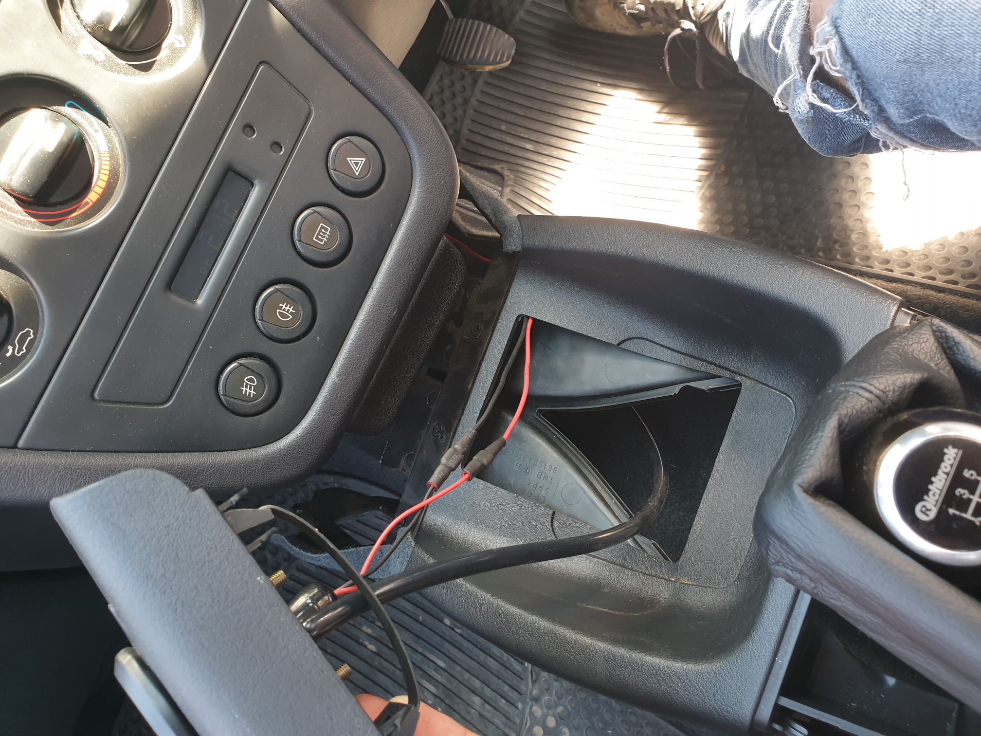 Boost gauge is now in. After looking through the cars paperwork and seeing the number pad had been disconnected I thought that would be the best place for the install. I bought some ABS textured plastic off Ebay to match the centre console plastic (or near enough) then cut and filed to fit. A 52mm hole saw was used to make the hole for the boost gauge, then some more filing!