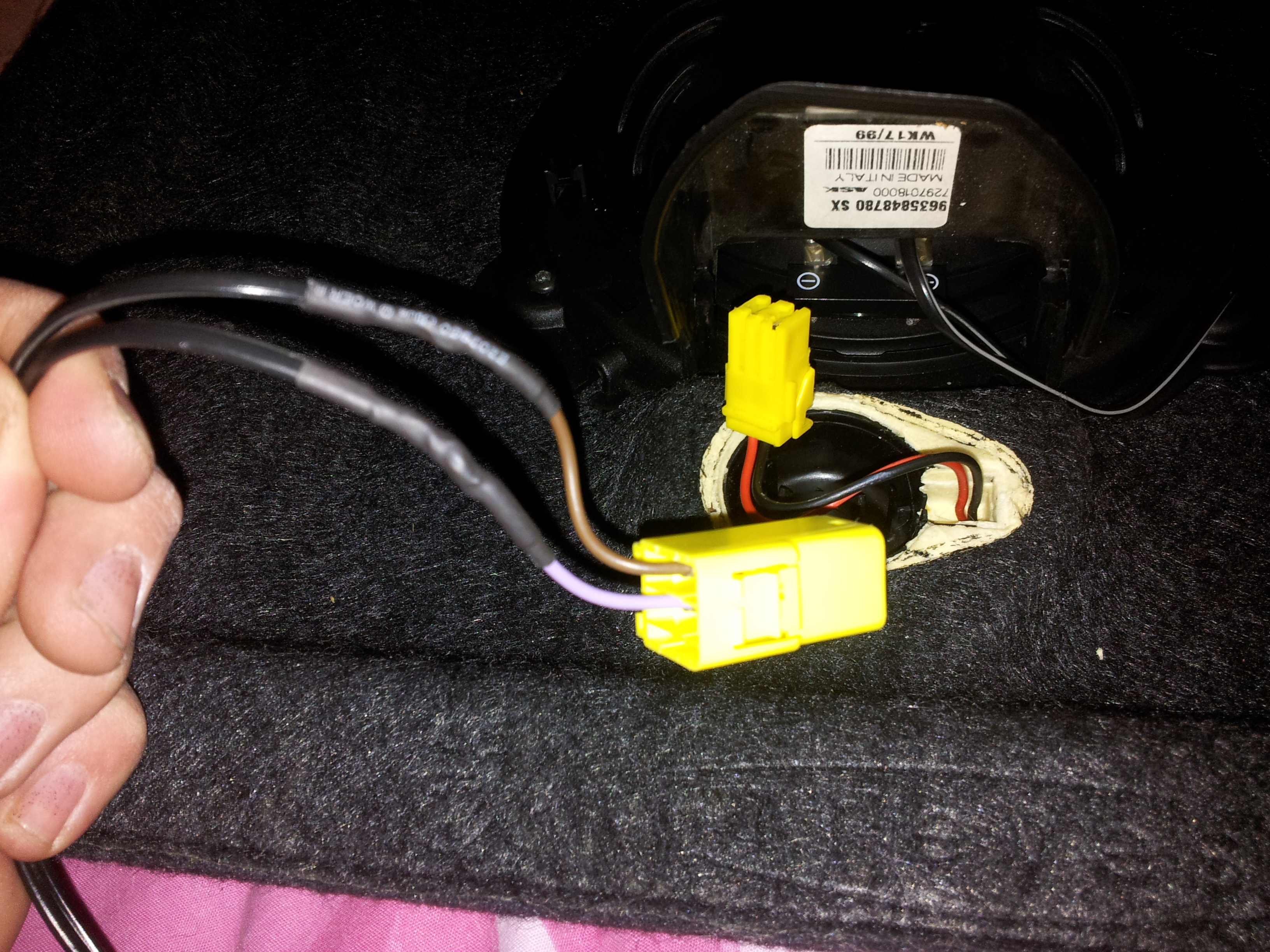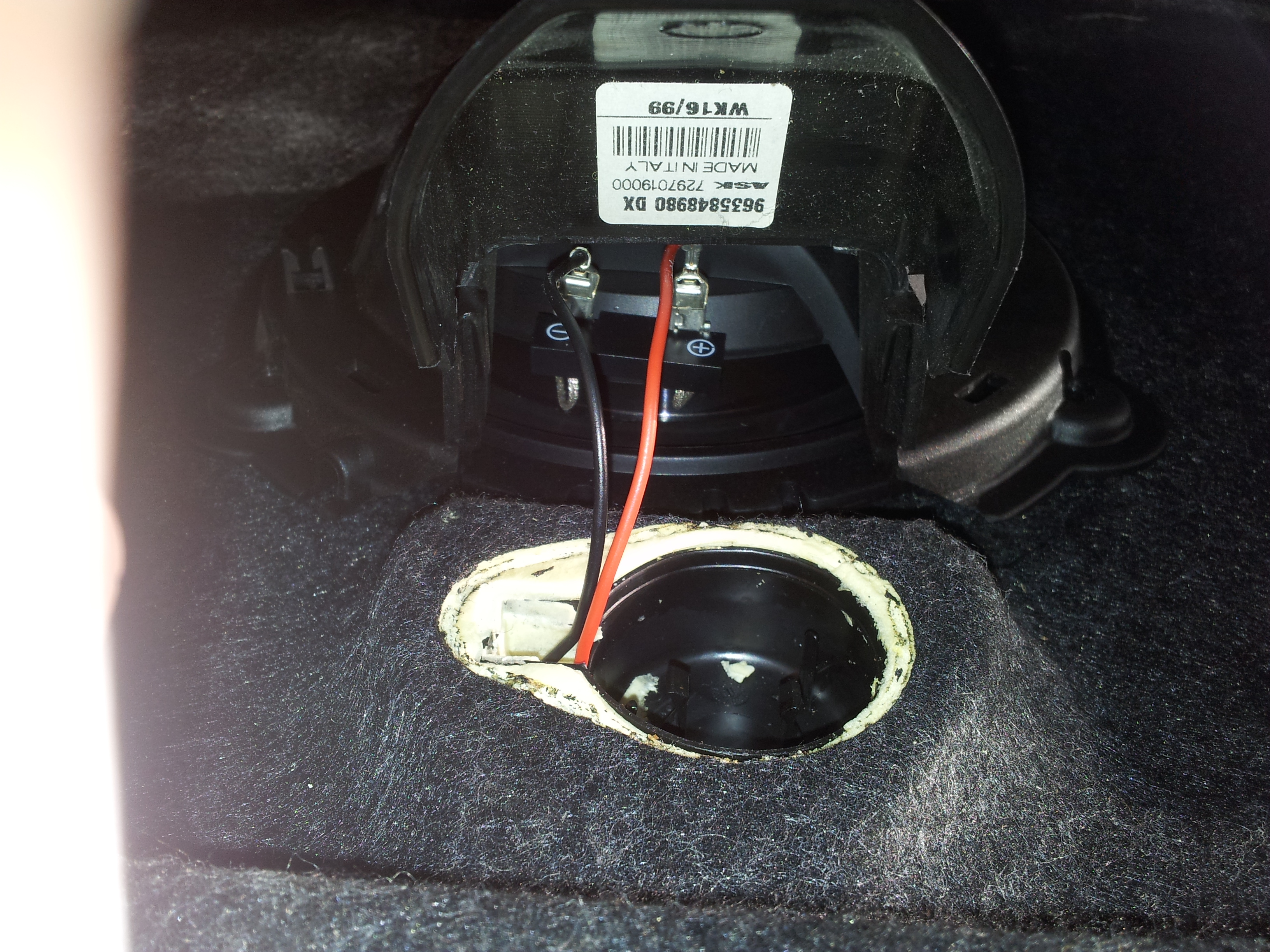 Decided to use the original wires set in the parcel shelf for one of the speakers to avoid a mass of wiring, just had to remove the plug and crimp the terminals a little tighter[