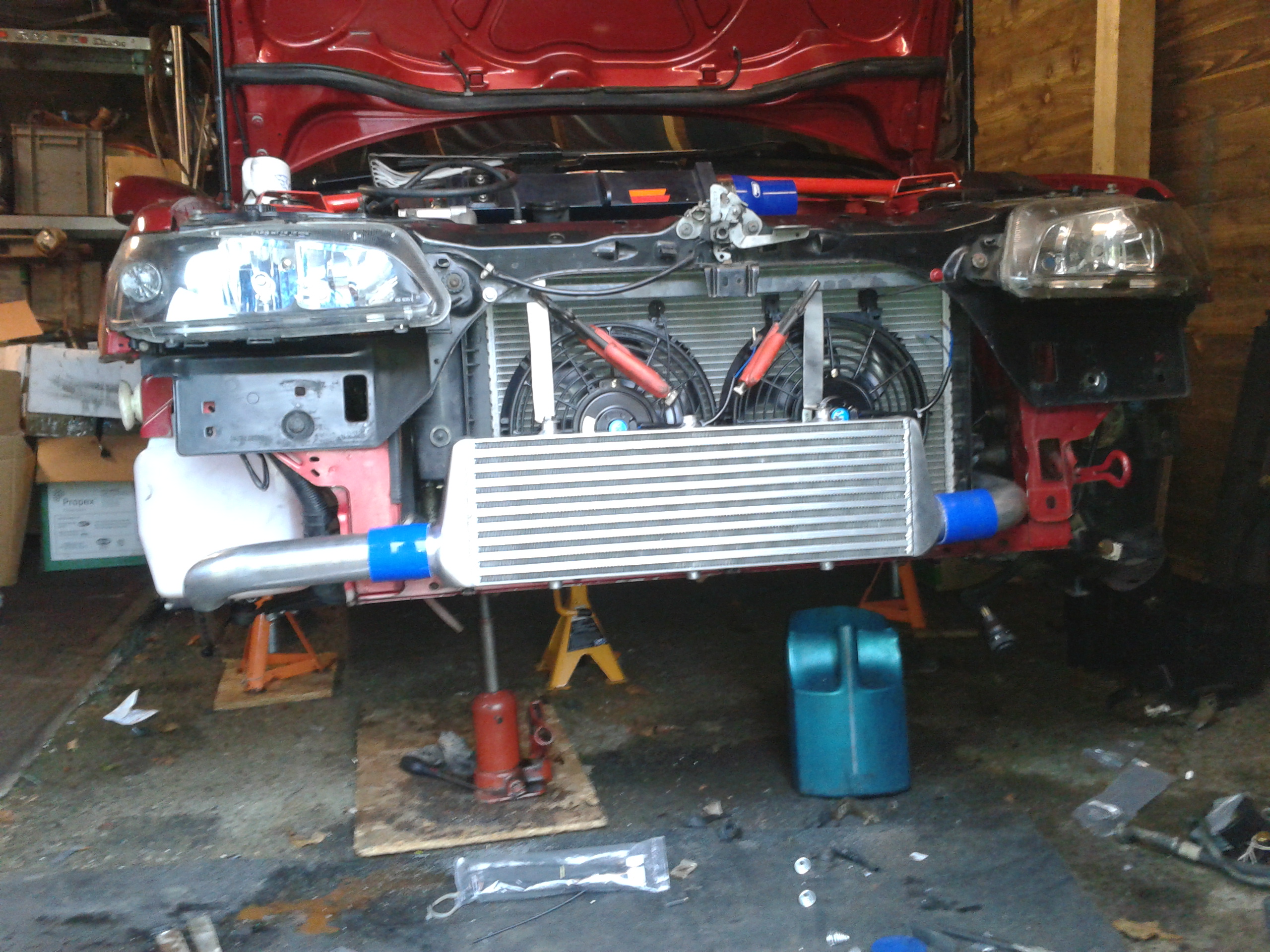 Im not sure if I'm going to take my drivers side boost pipe over the top of the IC and in through the passengers side of the rad or if I'm going to do the same as you. Are you cutting the hole for the bottle filler neck bigger to take a pipe through there?