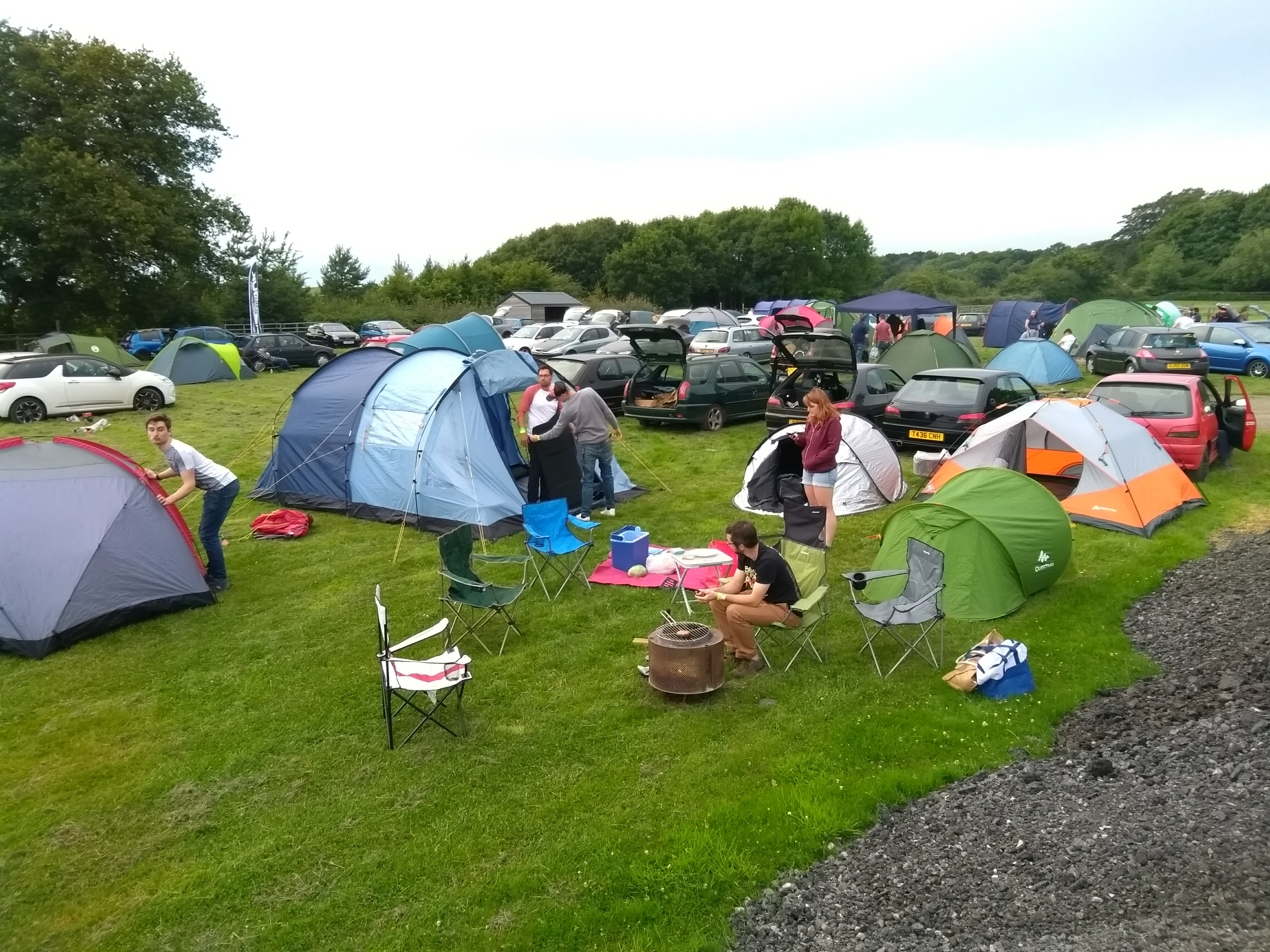 Preparation started with members cleaning their cars the night before and the East contigent met at 4pm at Bury St Edmunds before grabbing food and driving to camp arriving shortly after 7. A shoutout from Mista Jam covering Greg James' Dance Anthems also gave the club a shoutout after I texted in which was a great start to the weekend. By the time we arrived Orta had been there for a few hours on his own and had picked a prime camping spot. Everyone else arrived several minutes later. Erections came first before roasting meat over the burning bin washing machine drum that Bash and Lu had brought along.